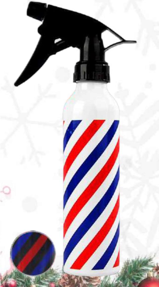 Con capacidad de 200ML, es perfecto para humedecer el cabello antes del corte, refrescar durante el peinado o preparar el cabello para trabajar con mayor precisión. Su diseño metalizado tipo barber pole le da un estilo único y profesional que llama la atención al instante ✨👌